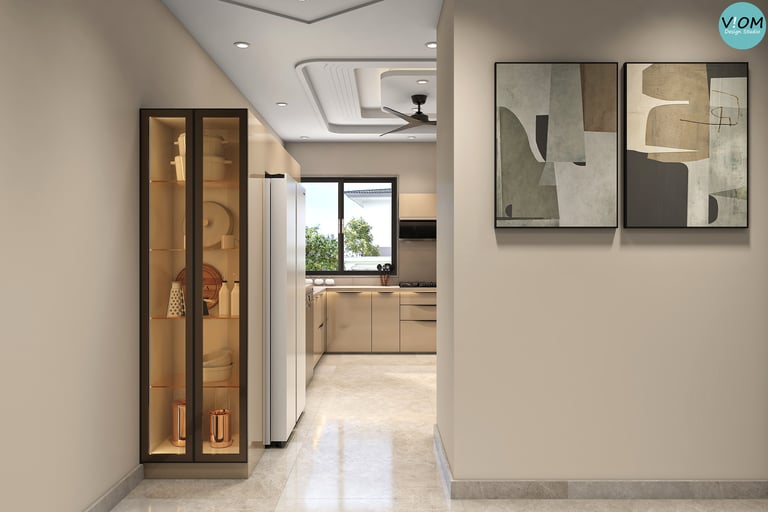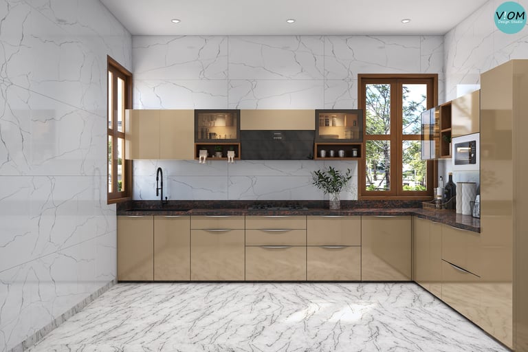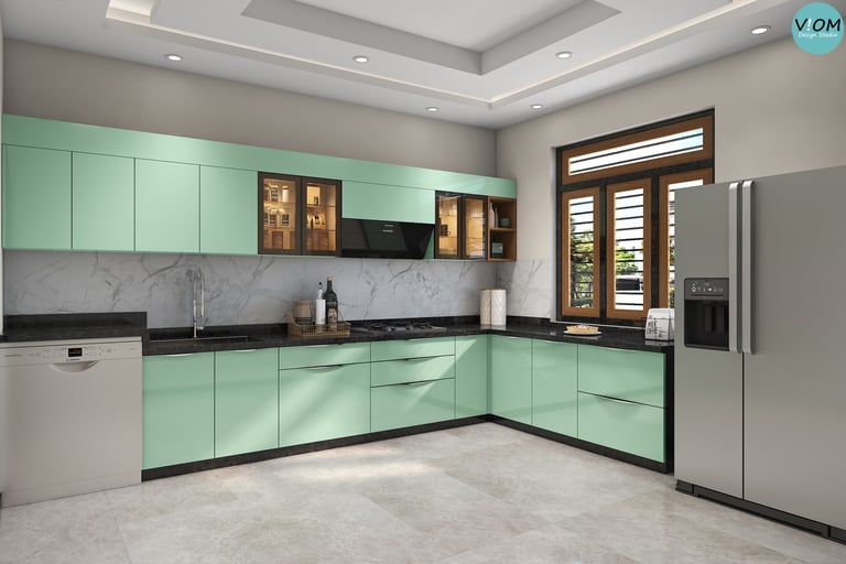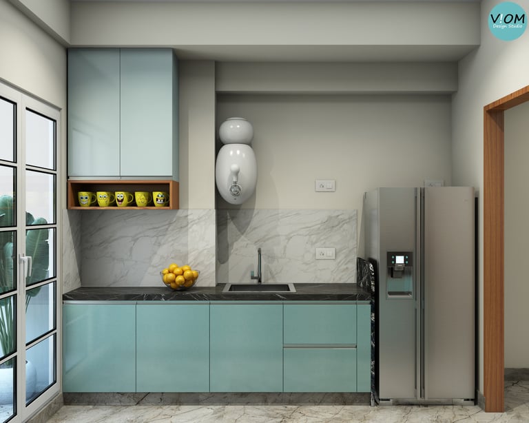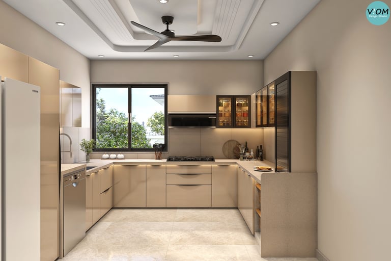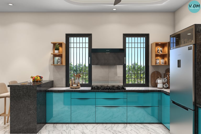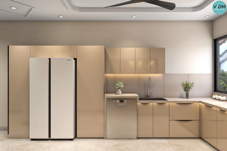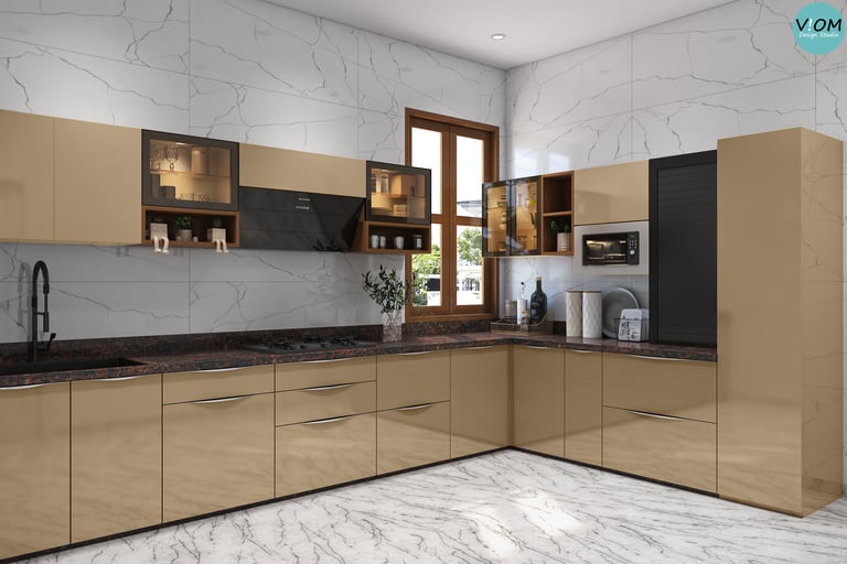 Internal Storage Visualization: We design the inside of your cabinets too—pull-outs, pantry units, and cutlery organizers are planned to perfection.